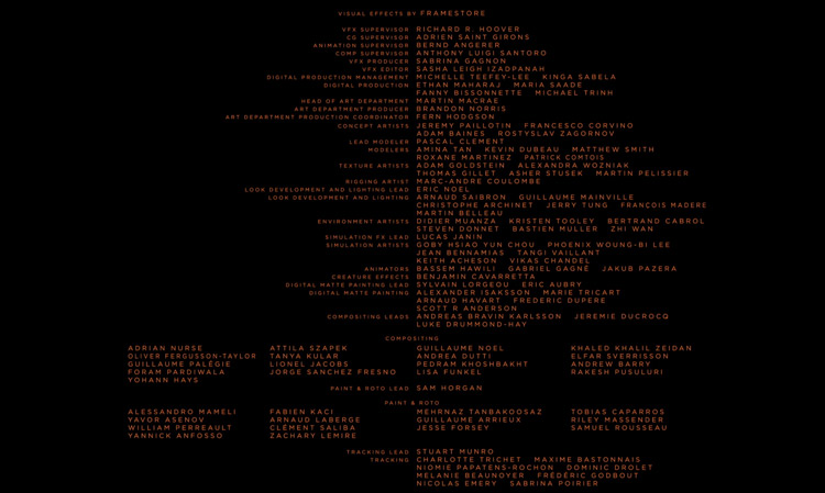 To help solve this puzzle, I decided to rely on the age old ‘sequence lead’ position that we’d not used for several years at Framestore (because our Montreal shows were smaller while we built the studio up). Crossing this 150 shot threshold of mine, I wanted sequence leads. 1 lead per 100 shots if the work could be broken down that neatly. It was important also that I not create another level of approval for artists that would just slow production down. So, I needed the VFX sup and the sequence leads to work directly with the artists. And everybody needed to trust one another!