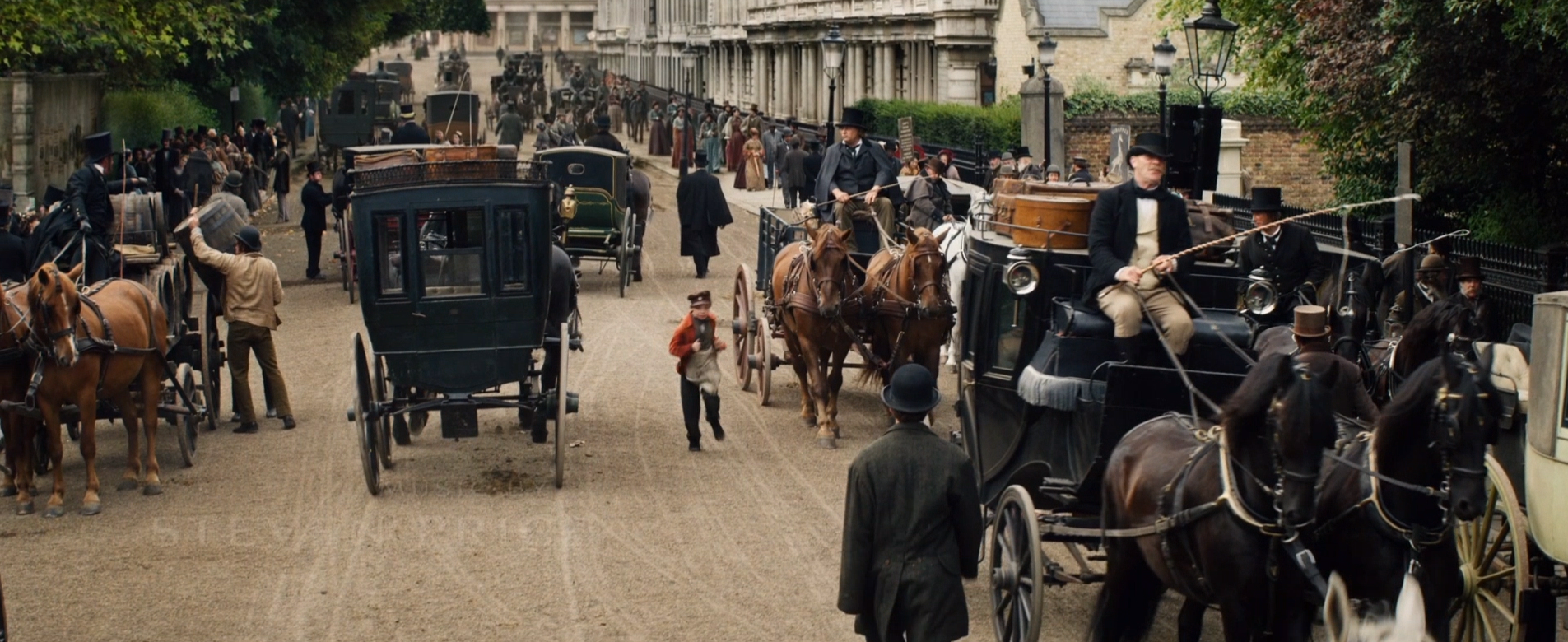 A short sequence of shots where Amelia visits the male only university. There was set cleanup, moving cabling and rigging and lighting as well as set extentions at the end of the corridoor.